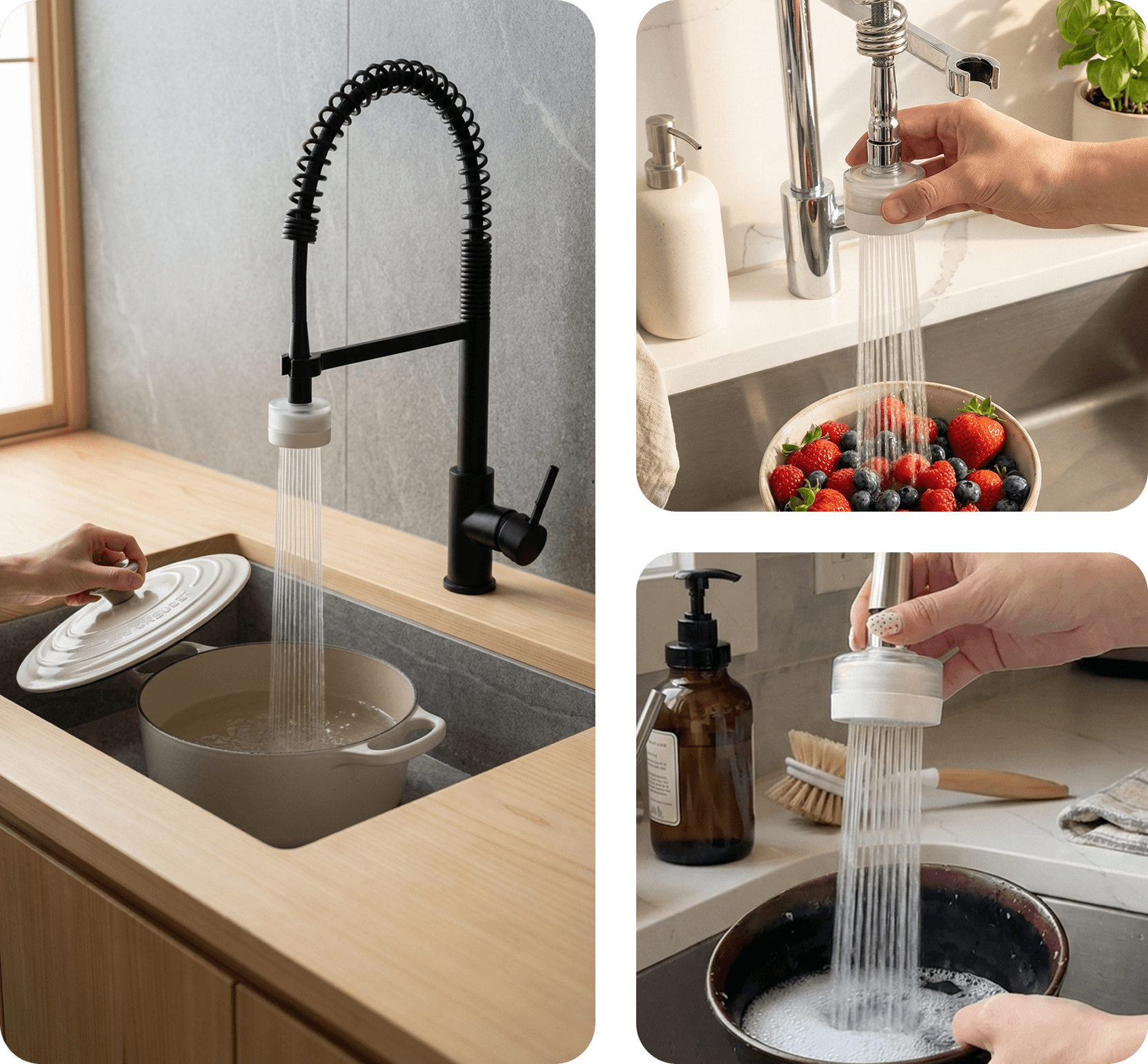 Our filter works with both hidden and exposed faucet aerators. If the provided adapters don’t fit, just fill out the form from the Installation QR code that comes with your Puresoft Filter, and we’ll send a custom one right away. Not sure if your faucet’s compatible? Send a pic of your aerator to support@waterdoctor.co and we’ll happily check for you 😊